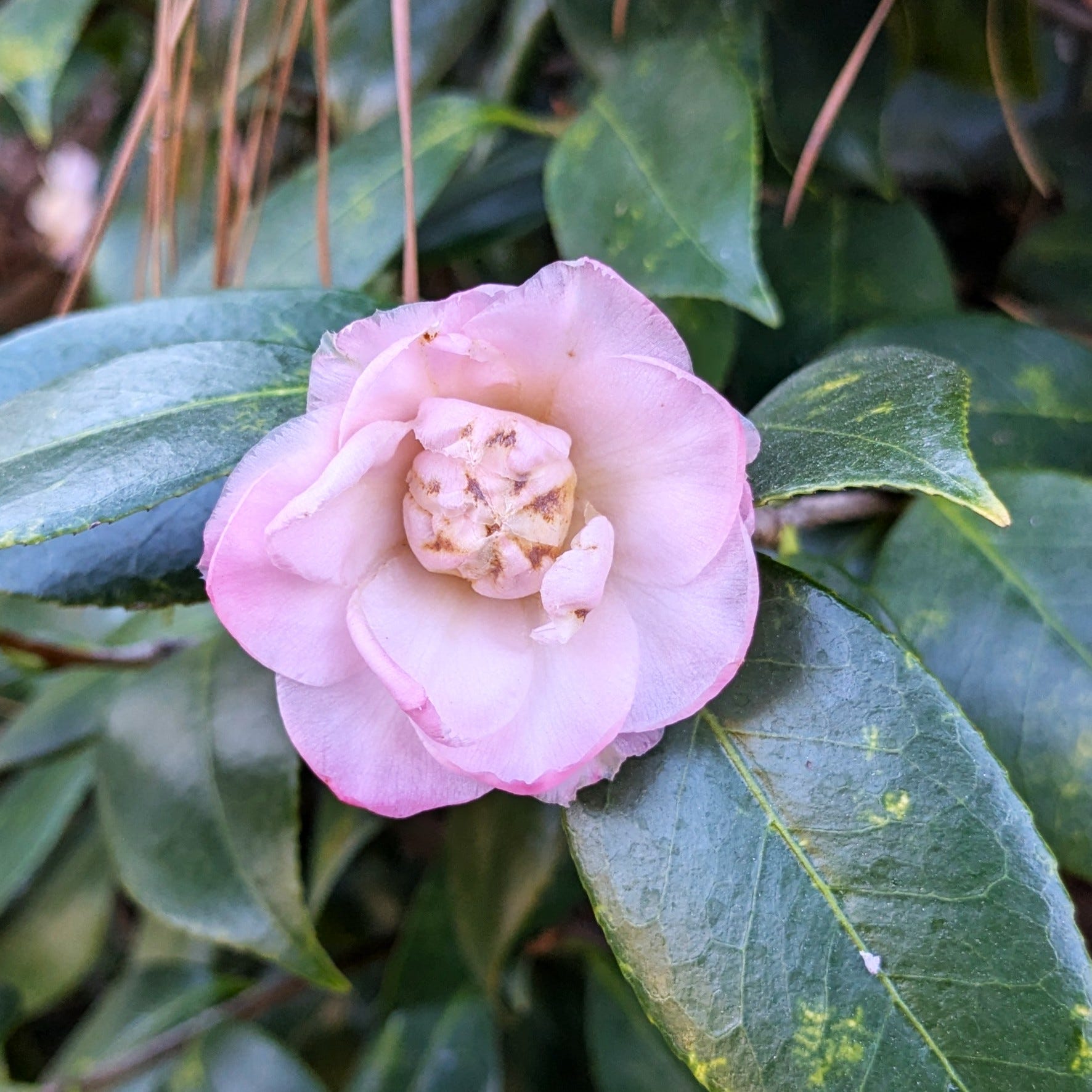 We have very few camellia blossoms this year. That freezing weather came at just the wrong time.