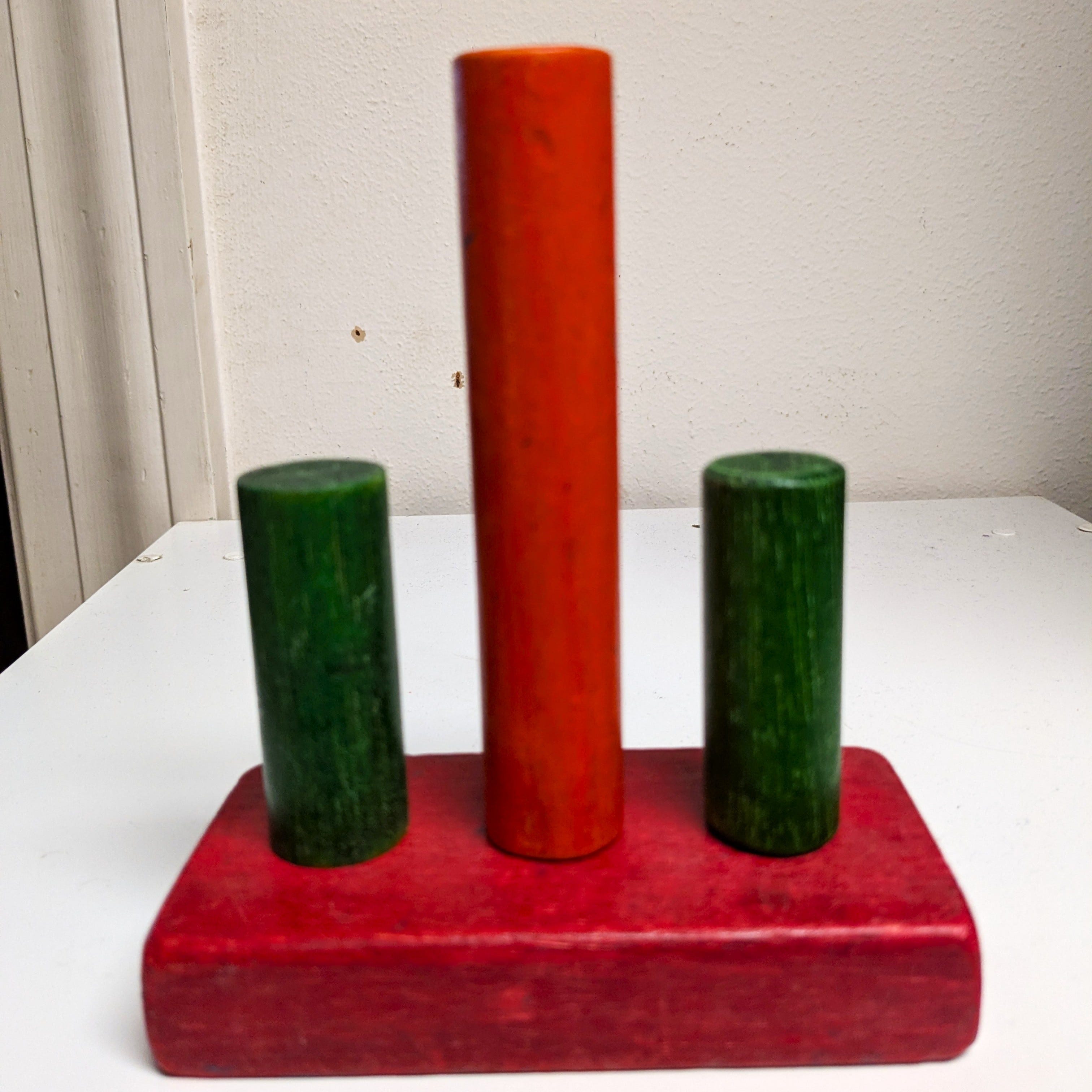 In among the Duplo I found a few wooden blocks. We had given the blocks to Flynn and Tiffany, so I asked if they still had them, thinking I could bring the few stragglers next time we visit. Alas, they had to give the blocks away because the girls were using them as weapons (!!!), but Flynn said he kept one for the sake of childhood memories and had it on a shelf near his desk. So I thought I’d do the same. These four blocks are a memorial to the years when our house was full of creative, enthusiastic kids.