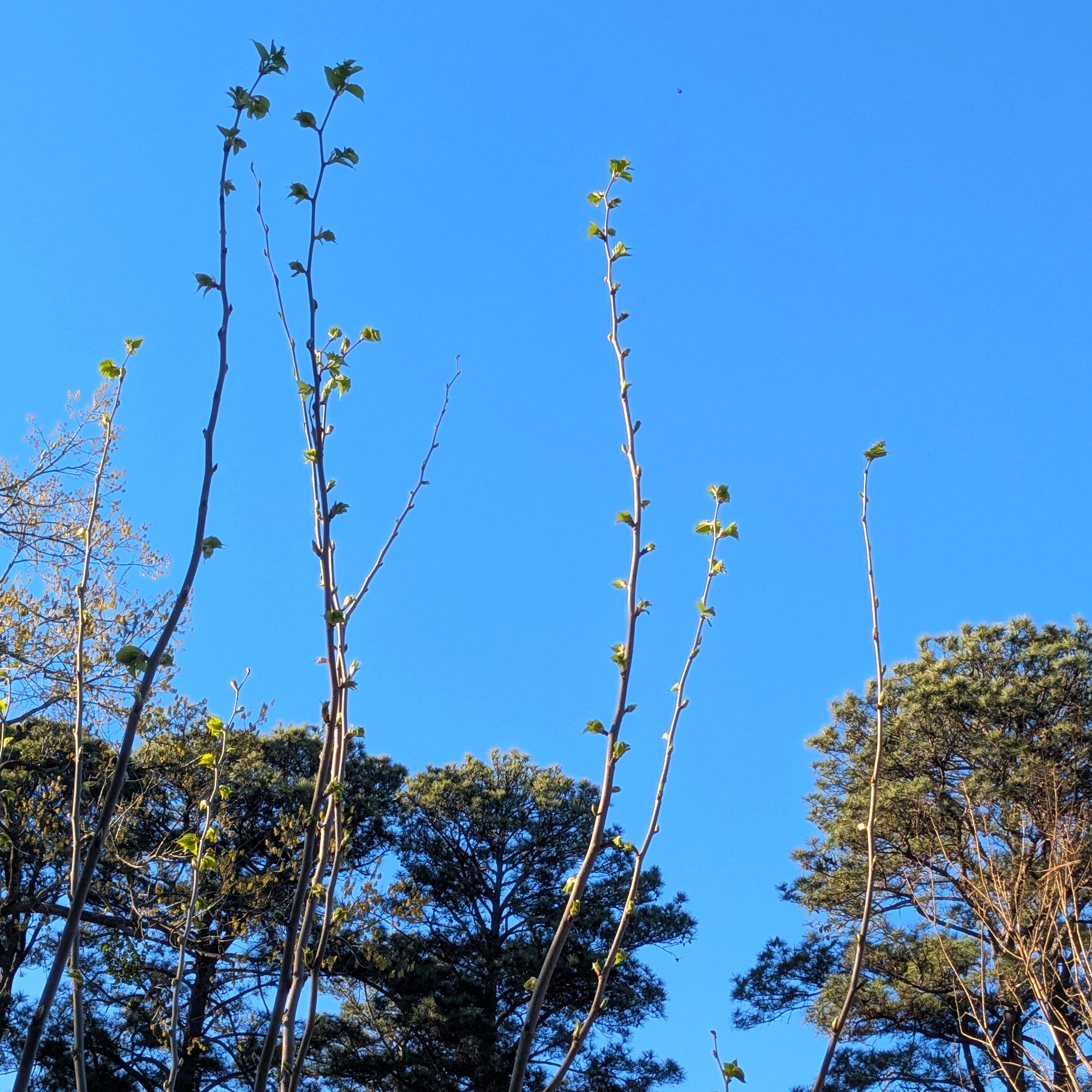 Do you see what I see? A mulberry tree budding out.