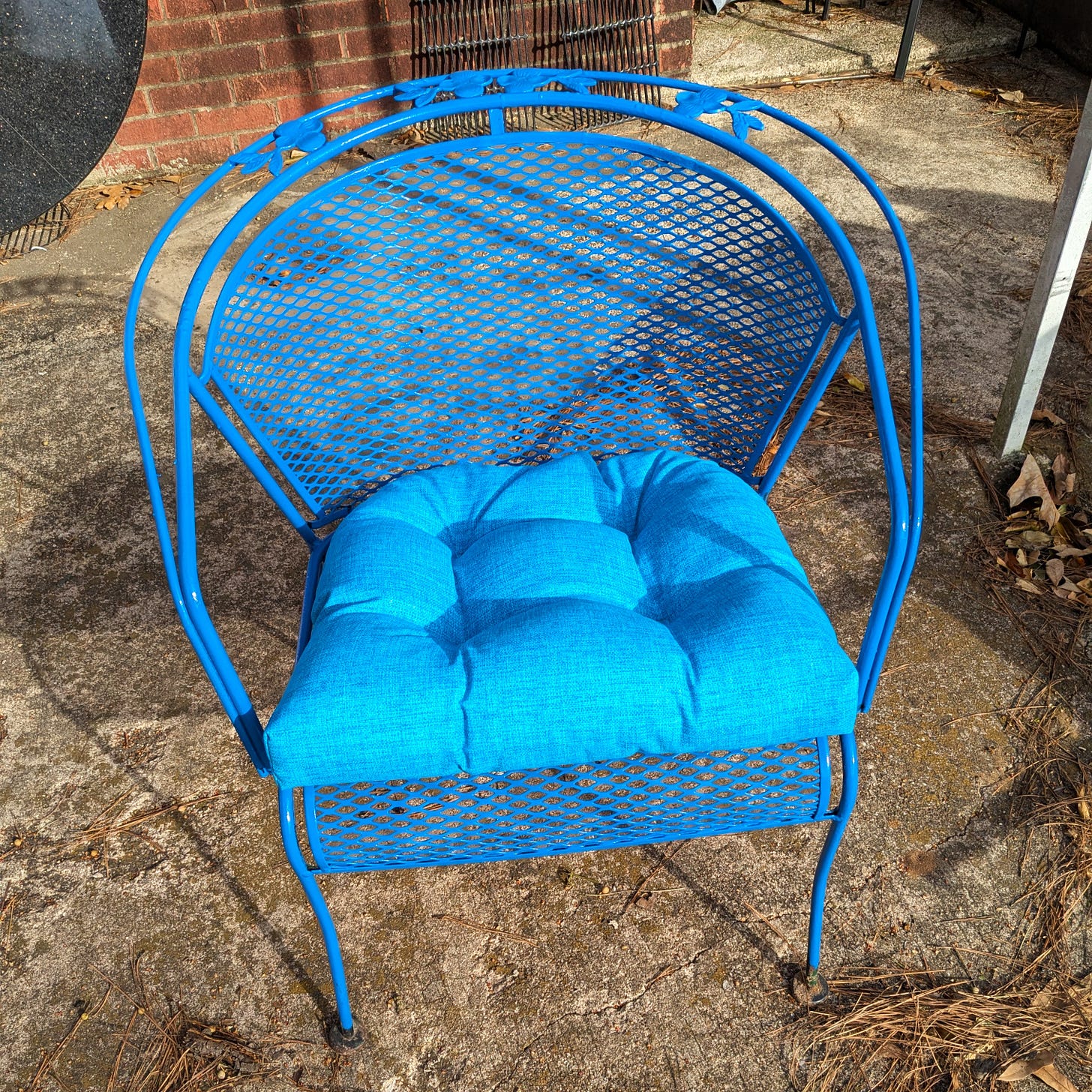 Jasper also finished painting and clear-coating my chair, so my “new” blue throne is now in the back as well.