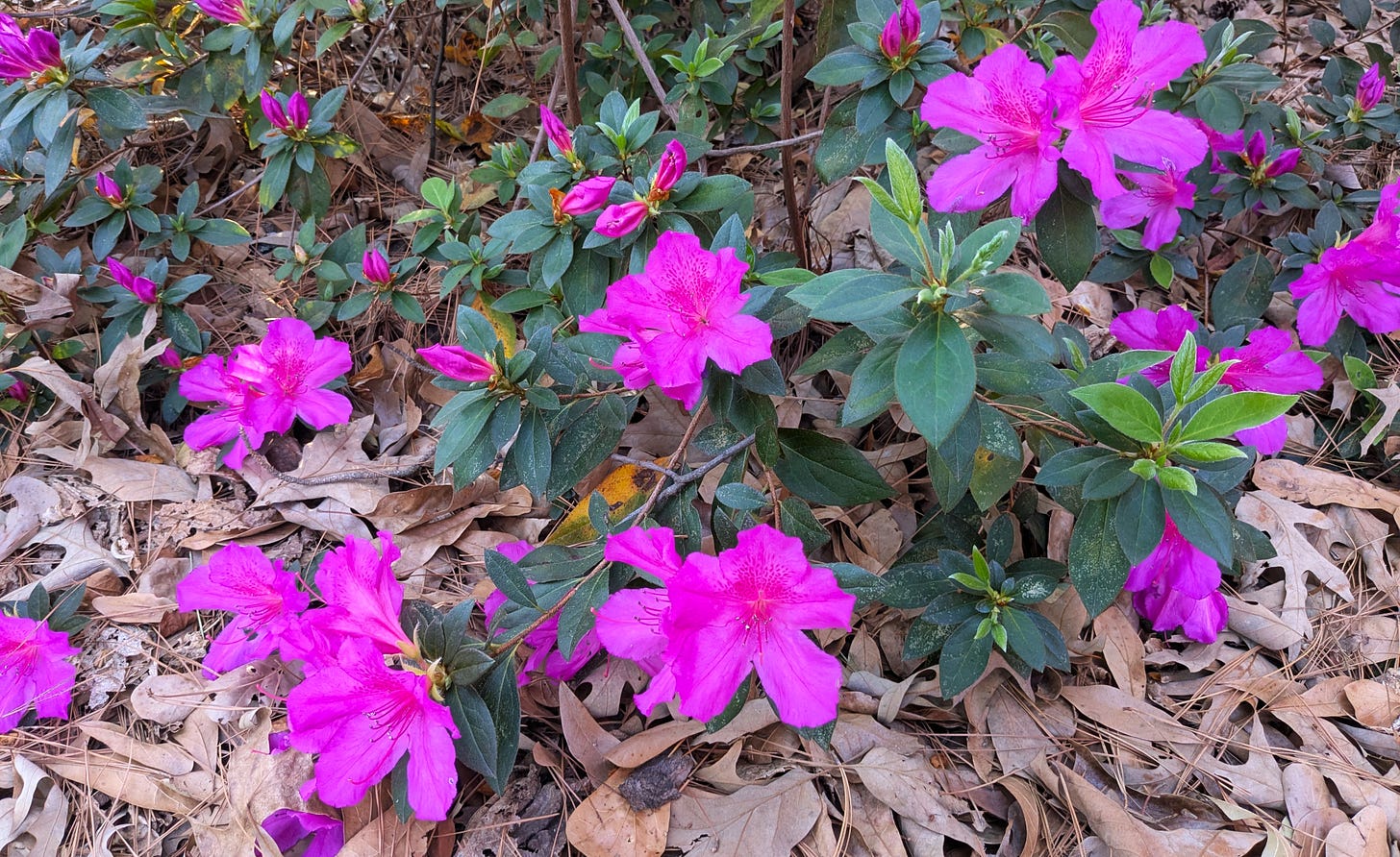Coming attractions! The first few azalea blooms on the south side of the house.