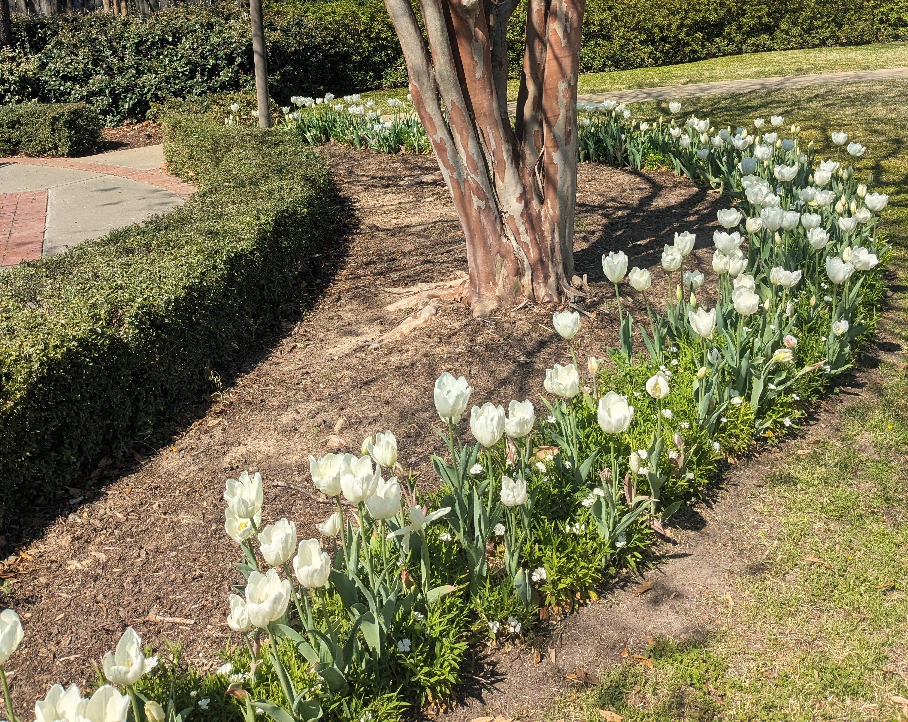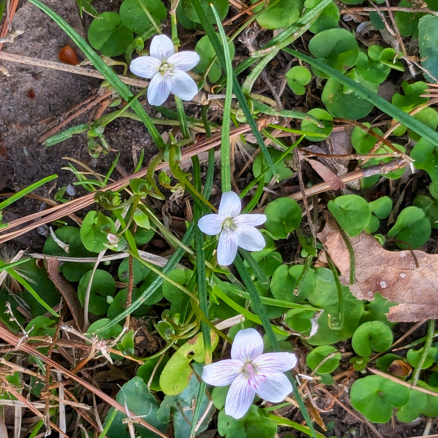 They had two varieties of these deciduous magnolias—Ann and Betty. I liked Betty a little better so we brought her home, and as you can see she’s already chilling out in our back yard, thanks to Walter. While I was in the back yard admiring Betty, I noticed that we have hundreds of tiny flowers blooming in the grass. Like violets:
