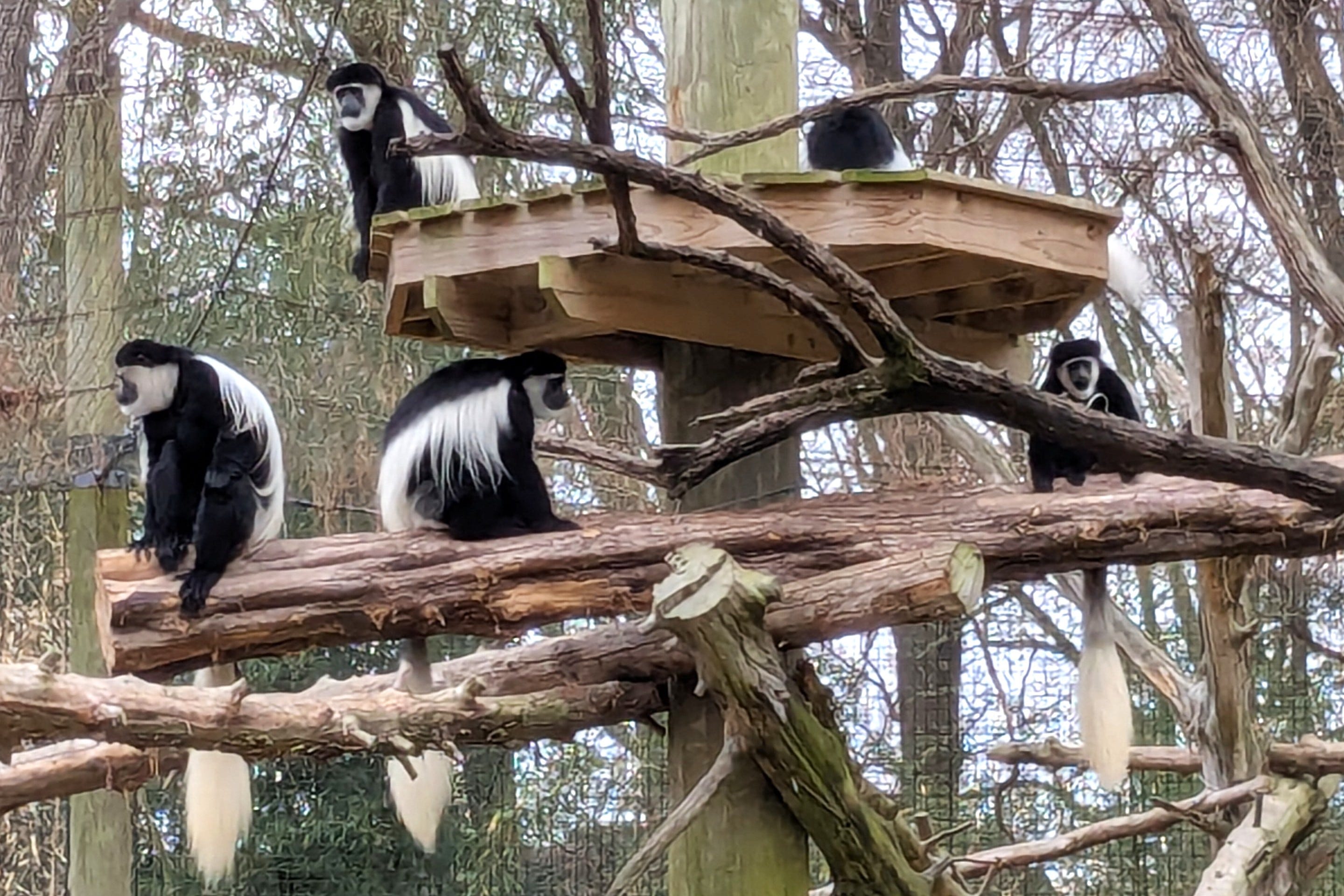 And then it was on to the African section. They have a big area that is normally shared by colobus monkeys and bongos, but when we first got there, it was empty. Then, as we were standing there, they released the monkeys: