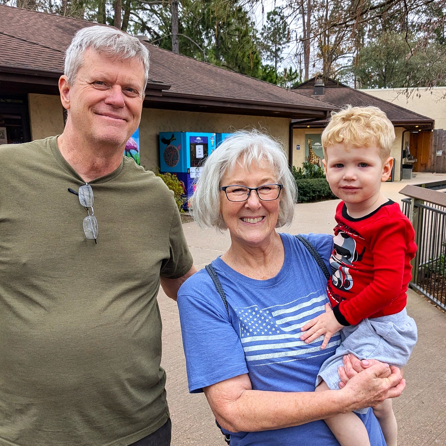 We got there right at 10:00, and as we were admiring the flamingos near the entrance, someone called my name. I turned around to see my sweet friend Darlene with her husband Dean and their little grandson: